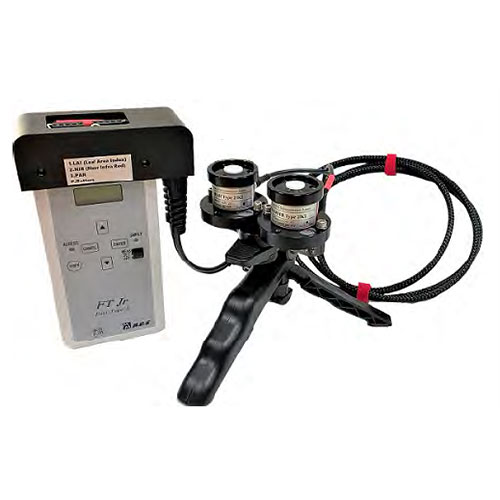 用途:MIJ-15LAI / P手持式葉面積指數(shù)測量儀是通過測量穿過植物冠層的太陽光的光譜比來計(jì)算葉面積指數(shù)(LAI)的。光合有效輻射(PAR,400-700nm)和近紅外光(NIR,700-1000nm)會在葉片內(nèi)的葉綠素處發(fā)生反射和吸收,因此透射光的比例和葉面積指數(shù)相關(guān),測試時(shí)不受天氣狀況影響,只需在冠層下方測量即可。
