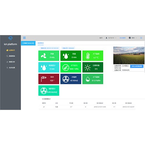 ? 實時監(jiān)測風速、風向、雨量、溫度、濕度、氣壓、太陽輻射、土壤溫度、土壤濕度等要素參數