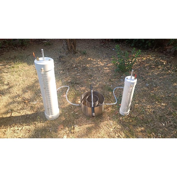 雙環(huán)入滲儀用來(lái)測(cè)量水滲入土壤的滲透速度,進(jìn)而計(jì)算土壤的垂向滲透系數(shù)的設(shè)備。通過(guò)記錄的測(cè)量結(jié)果和達(dá)西定律可以計(jì)算出該入滲速率。